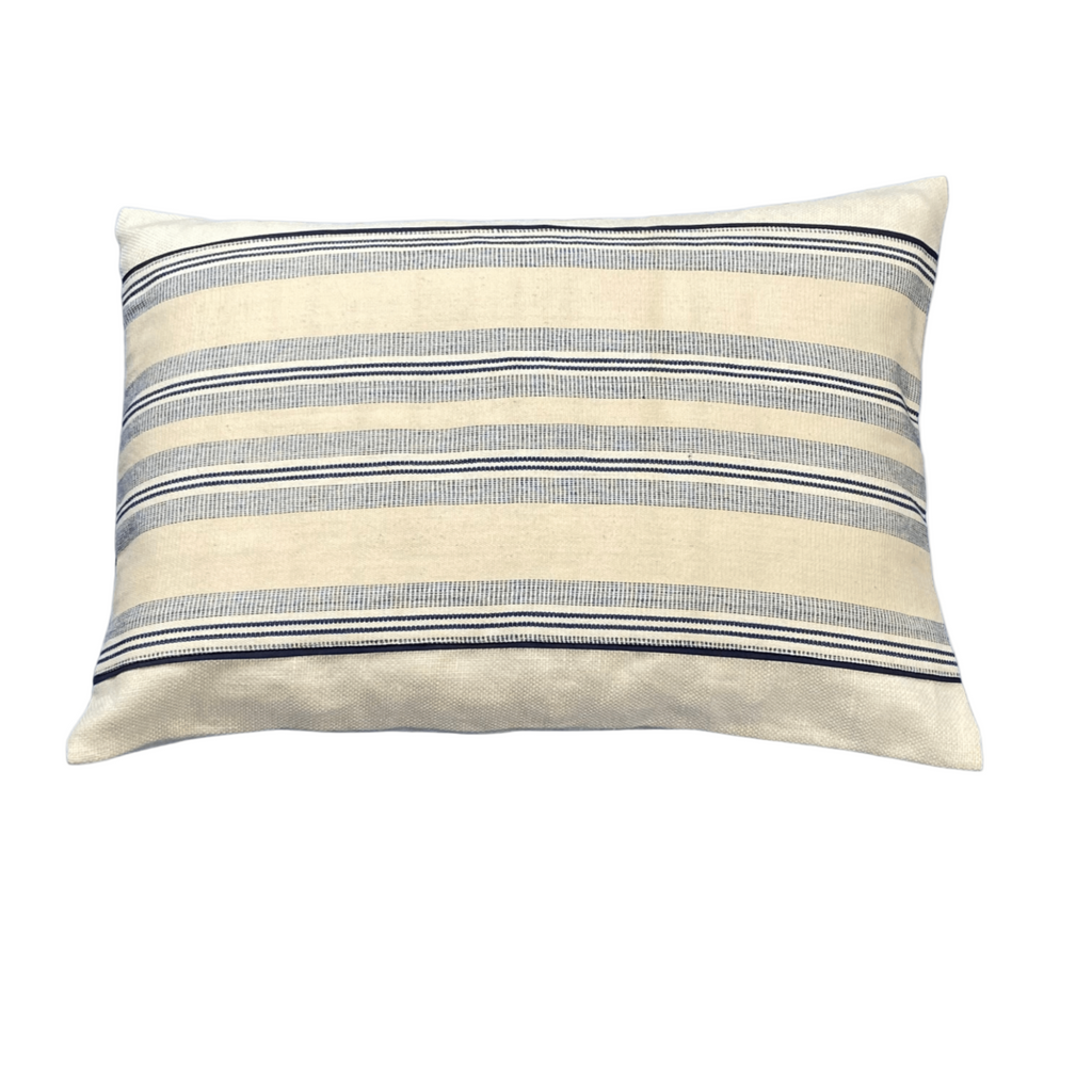 SMALL RECTANGLE BLUE & CREAM STRIPE CUSHION. BURKINA FASO PAGNE TISSÉ